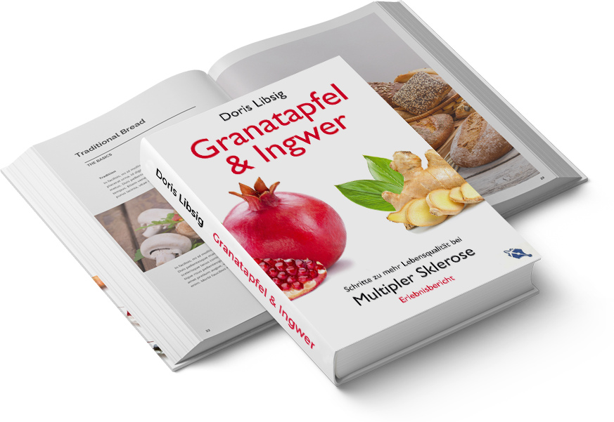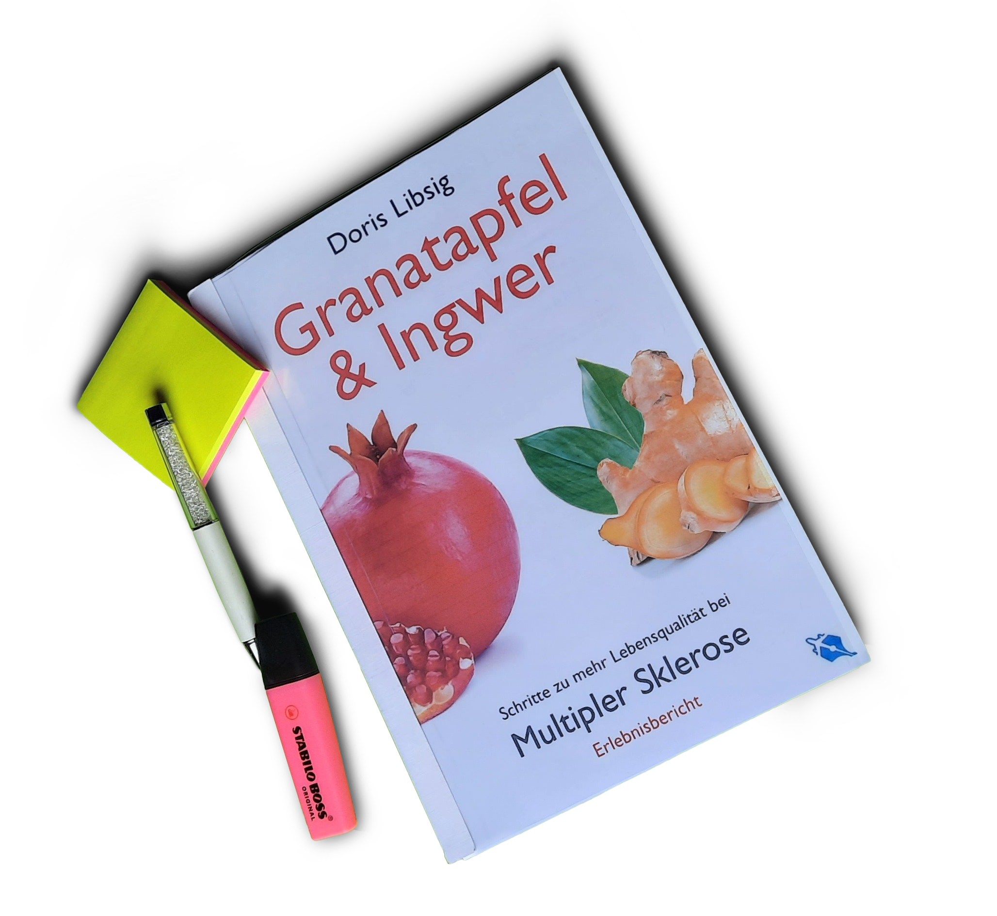 Das Buch «Granatapfel und Ingwer» beschreibt das Leben mit multipler Sklerose. Es soll Betroffenen den Umgang mit dieser Krankheit erläutern und zeigt verschiedene Therapieansätze auf. Die Autorin beschreibt einfühlsam und authentisch ihren Weg mit MS und das es neben der Schulmedizin noch viele andere Möglichkeiten gibt, der Krankheit zu begegnen. Sie schreibt, dass man jeden Tag ohne Schub als Geschenk ansehen soll, dankbar für kleine Fortschritte sein sollte, sowie Kraft aus sich selbst und einem tiefen Glauben schöpfen kann.